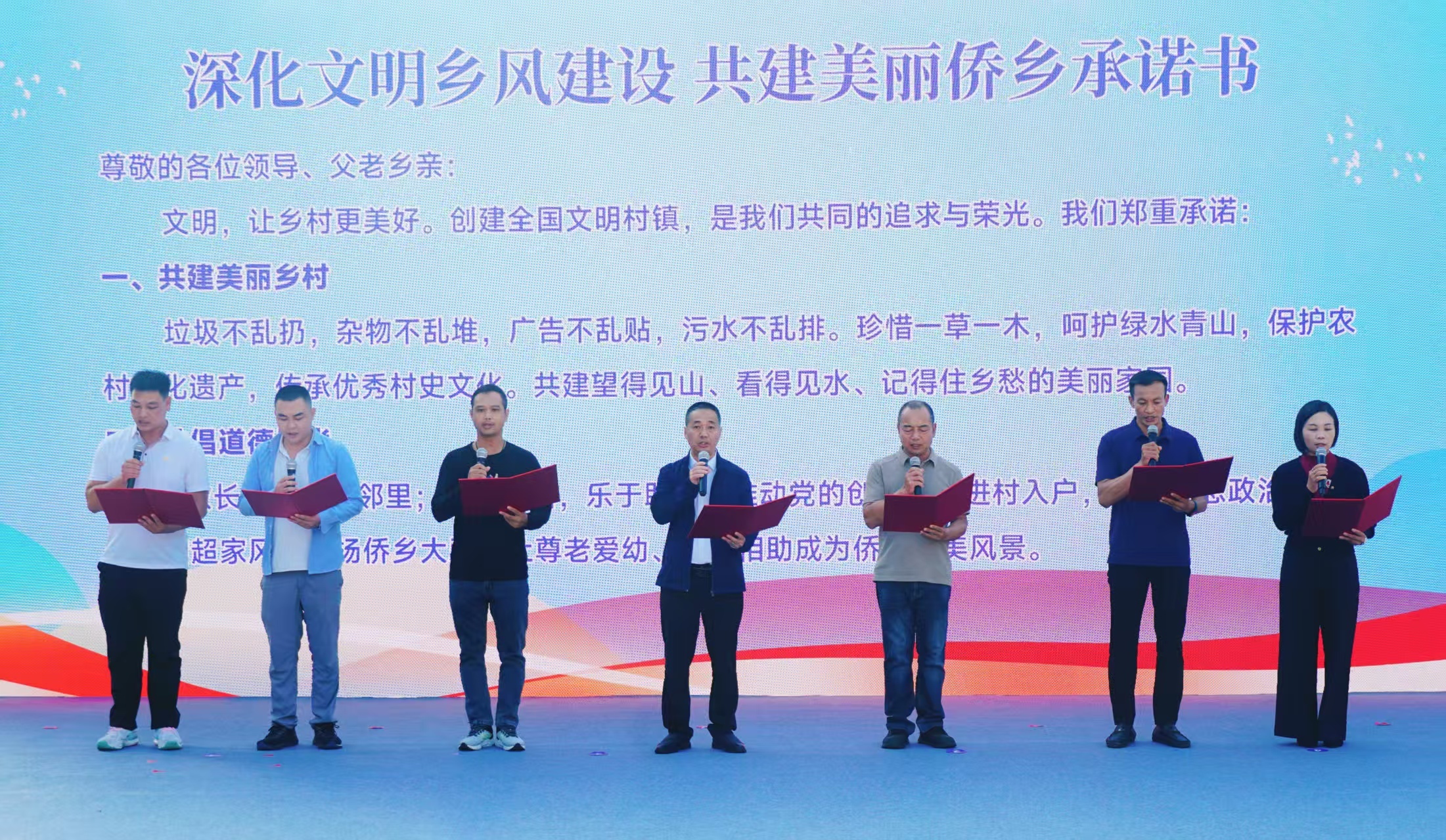 各县(市、区)推选的细致村镇代表共同上台,宣读创建甘愿书。